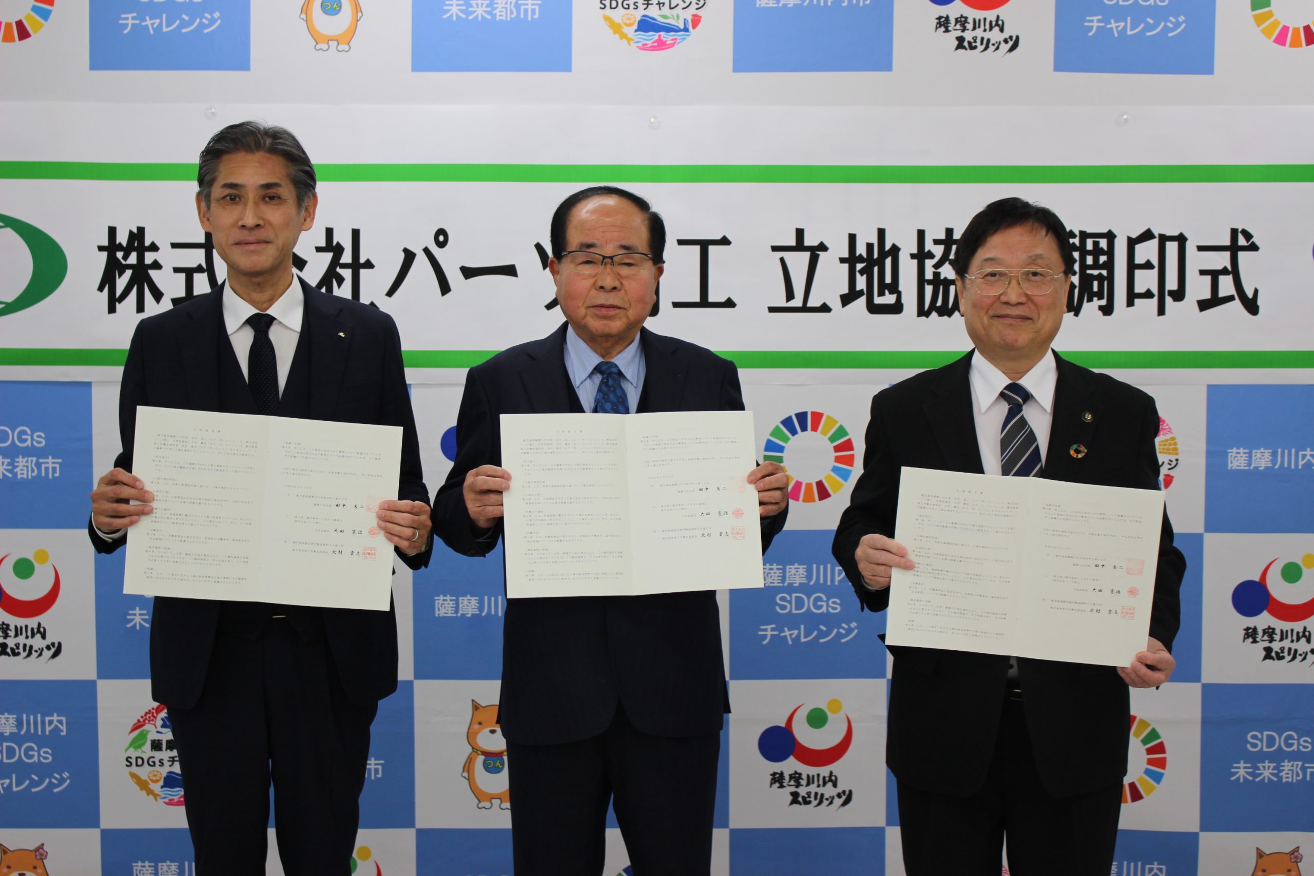 令和8年2月10日(火曜日)、薩摩川内市役所で株式会社パーツ精工との立地協定調印式が行われました。
